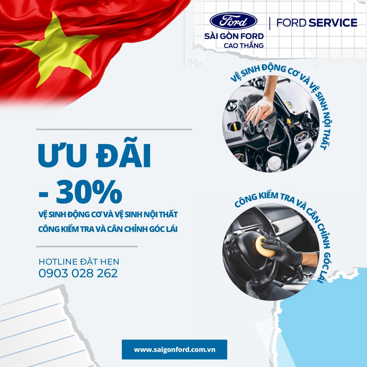 Lễ lộc đang tới gần kề, mời Quý khách hàng mau chóng ghé xưởng dịch vụ tại SAI_GON_FORD để tham gia các chương trình khuyến mãi tưng bừng tại đây cho “ xế cưng” chuẩn bị vi vu thả ga nào!!!