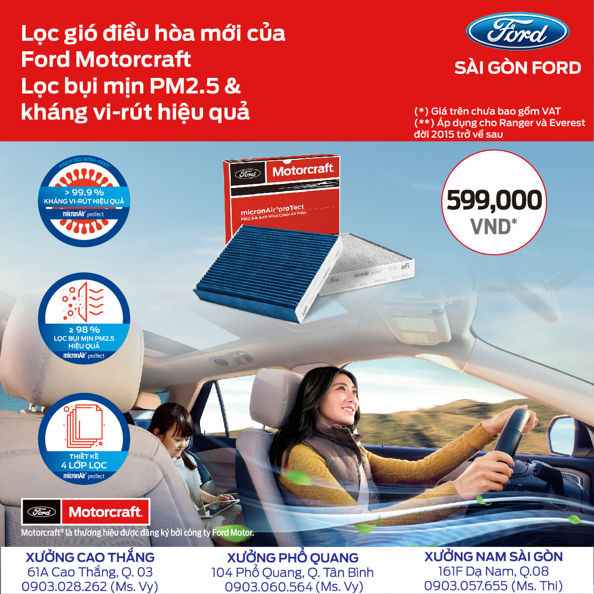 () Chỉ áp dụng cho các dòng xe Ranger và Everest đời 2015 trở về sau