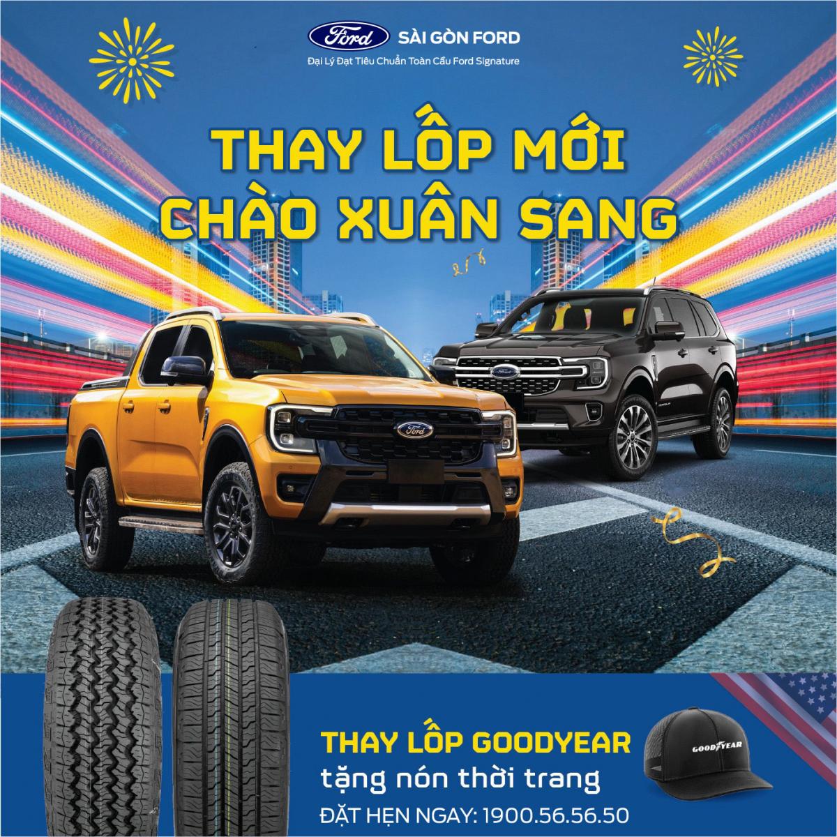 Liên hệ ngay hệ thống xưởng Sài Gòn Ford để được sở hữu ngay lốp xe Goodyear và cùng tham gia nhiều chương trình khuyến mãi đặc sắc tại xưởng dịch vụ.