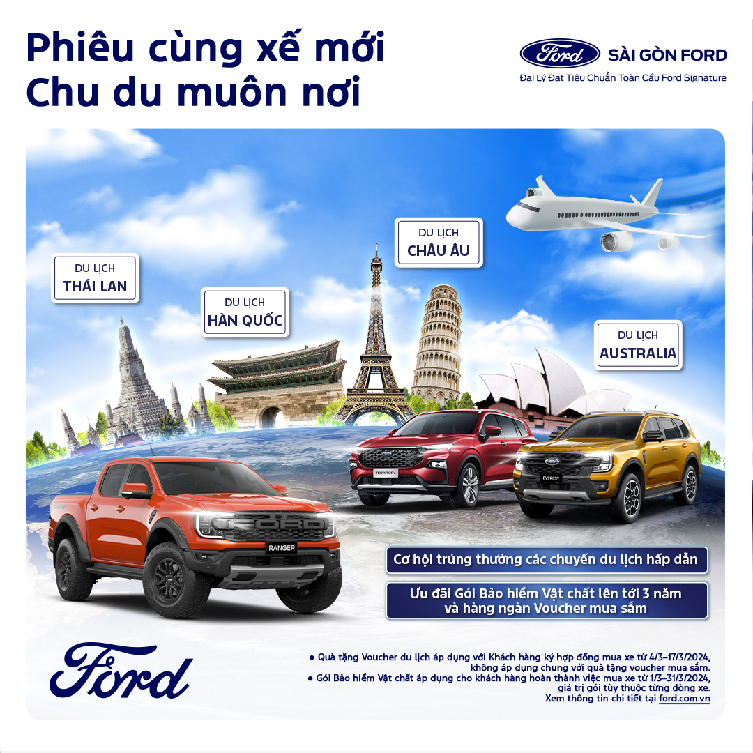 Cơ hội sở hữu những chuyến du lịch vòng quanh thế giới lên đến 150.000.000đ cùng Ford:
