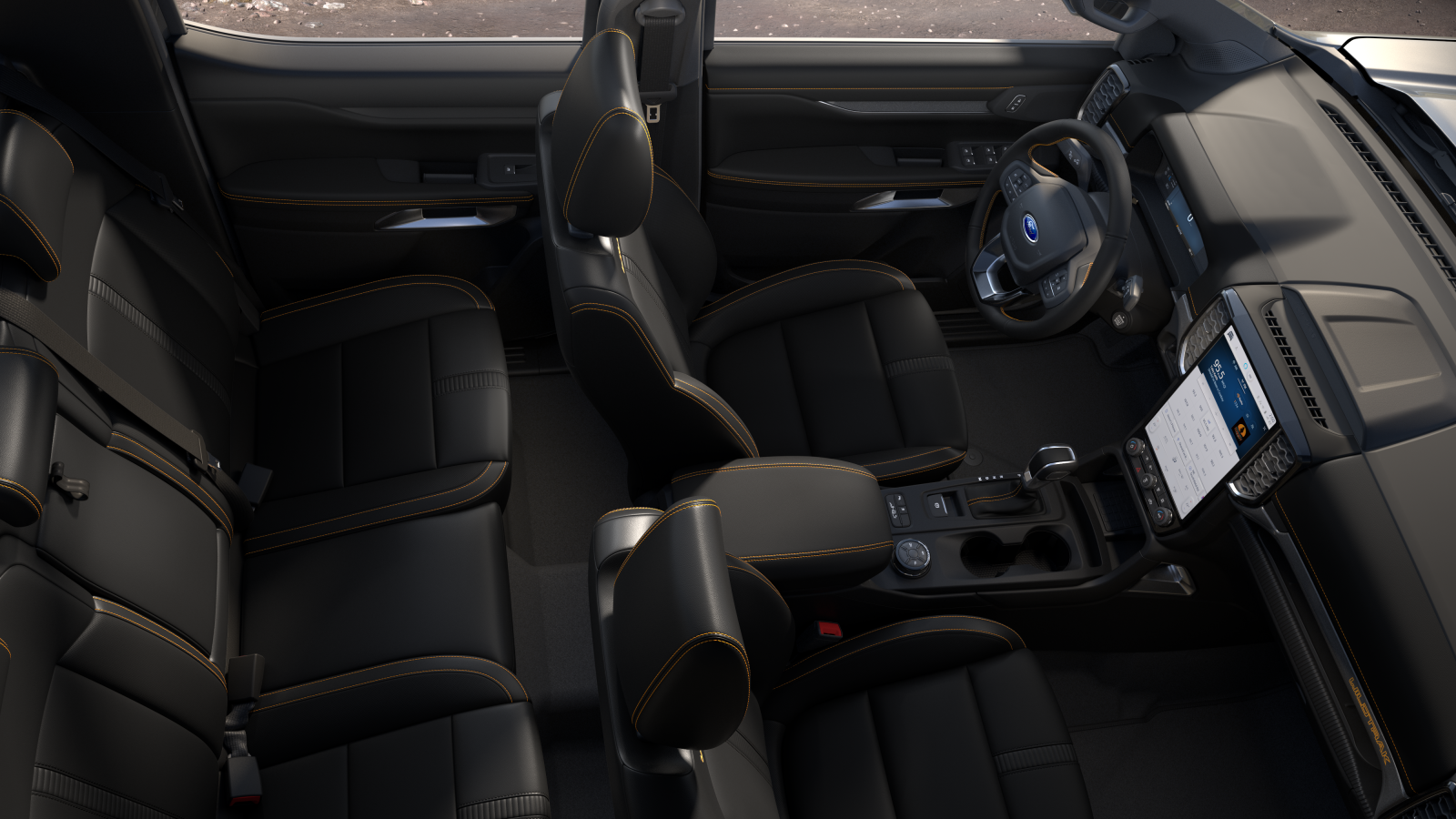 Về phần nội thất xe, Ford Ranger Thế Hệ Mới tạo cảm giác sang trọng hơn với màn hình cảm ứng trung tâm cỡ lớn 12 inch (phiên bản Wildtrak) hoặc 10 inch (hai phiên bản còn lại) có thể đặt thẳng đứng, đi kèm với công nghệ thông tin và giải trí SYNC 4; Cùng với đó, vật liệu nhựa cũng được dùng để bọc vỏ TV, nhằm mang đến trải nghiệm tốt hơn. Thêm vào đó, Hàng ghế phía sau cũng sẽ được thiết kế lại toàn bộ, khách hàng không chỉ có thêm diện tích để đồ mà việc xếp hàng hoá nhất là trong thùng carton còn dễ dàng hơn rất nhiều.
